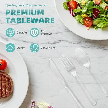 500 đếm giá trị gói nặng nhựa dùng một lần thìa 6.5 inch dao kéo rõ ràng cho các bữa tiệc dã ngoại phục vụ sử dụng thương mại